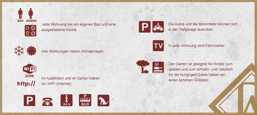 Diamant Apartment wurde im Jahr 2003 eröffnet, und besteht aus 2 Gebäuden, bietet 15 Apartments, die je zum Empfang 2- 6 Personen geeignet sind. Wir haben 1, 2 und 3 Zimmer Wohnungen, je mit ausgestatette Küche und Badezimmer.